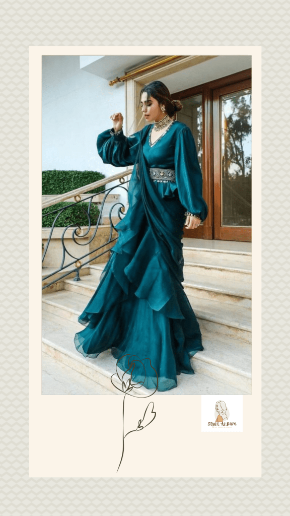 As we all know, a grace of ruffle saree for women never goes off-beaten. If you are in hassles what to wear at wedding function. Then, styling a ruffle saree is an ideal wear. You can go with an bright colour ruffle saree too. Such as yellow ruffle saree, pink ruffle saree etc.