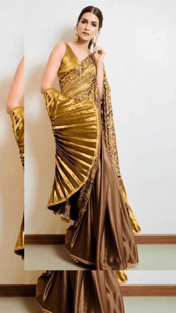 Kriti Sanon dazzling in golden saree and captured all hearts together along with her easy charm. The bollywood actress Kriti is a stunning diva and we admire her!